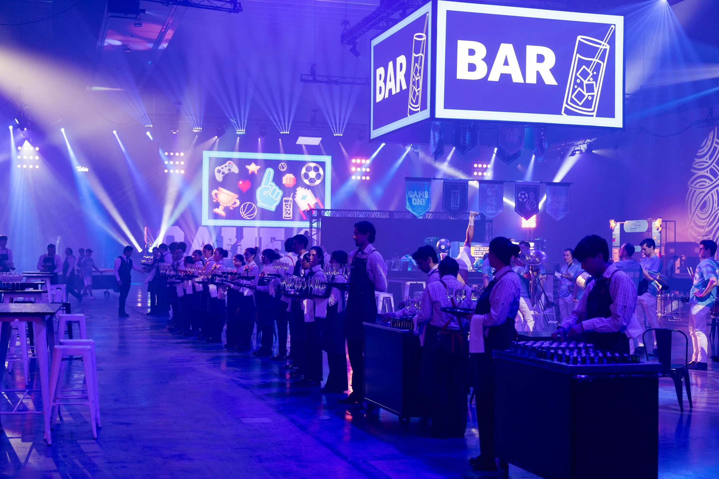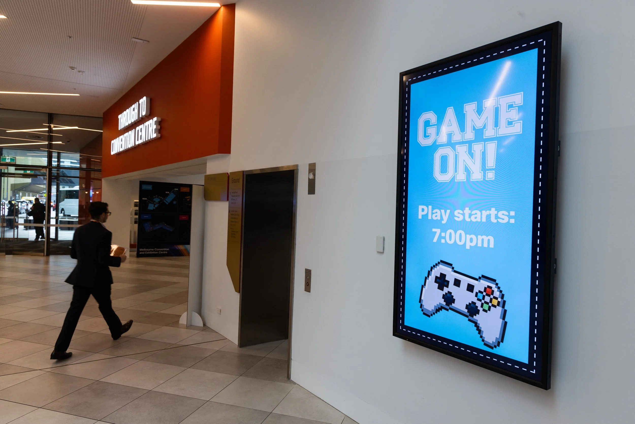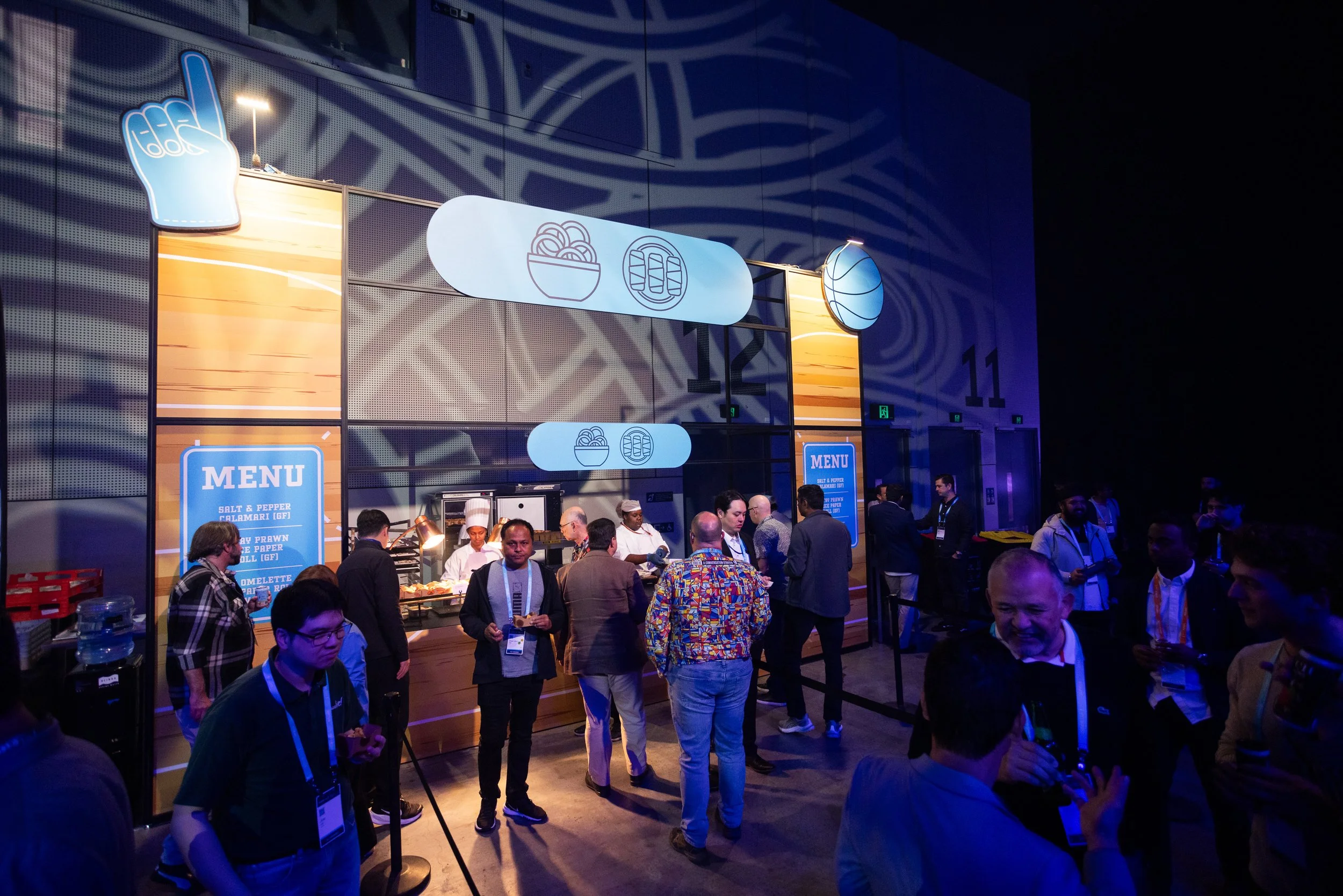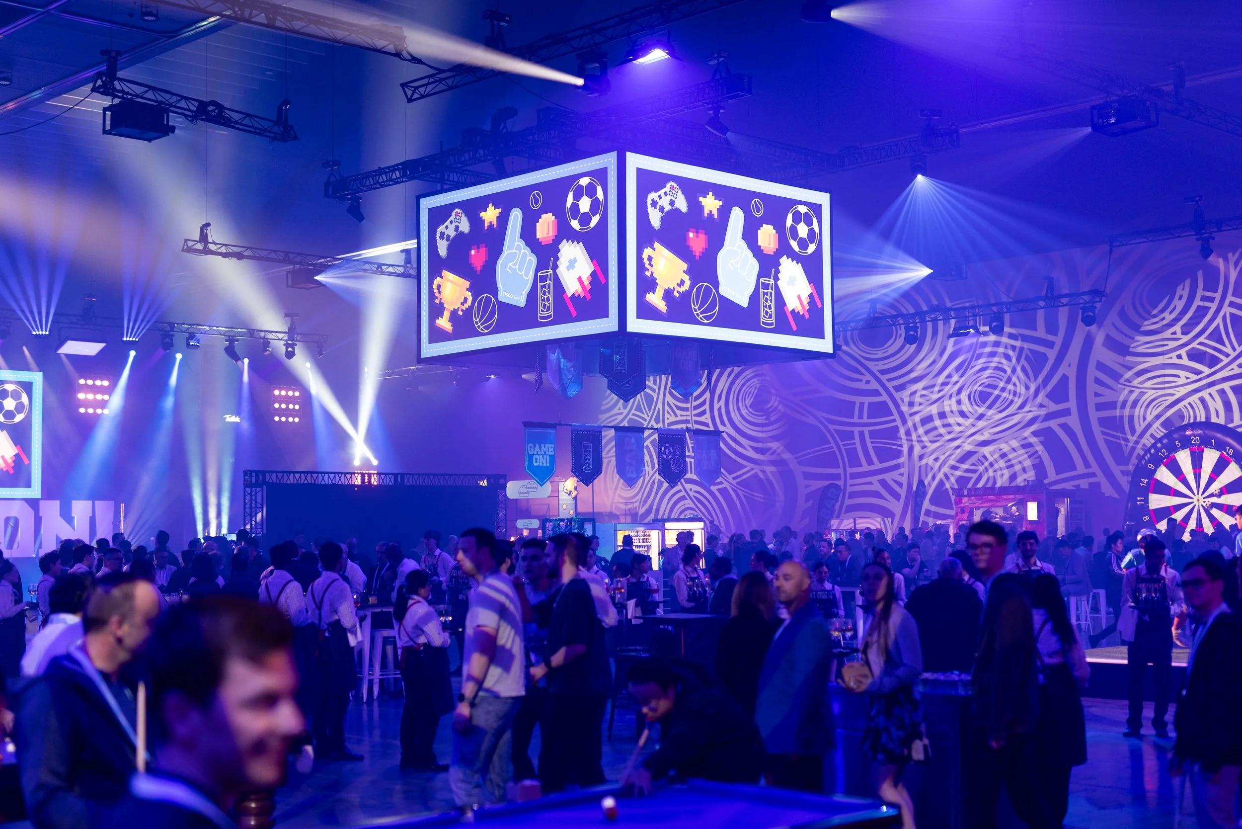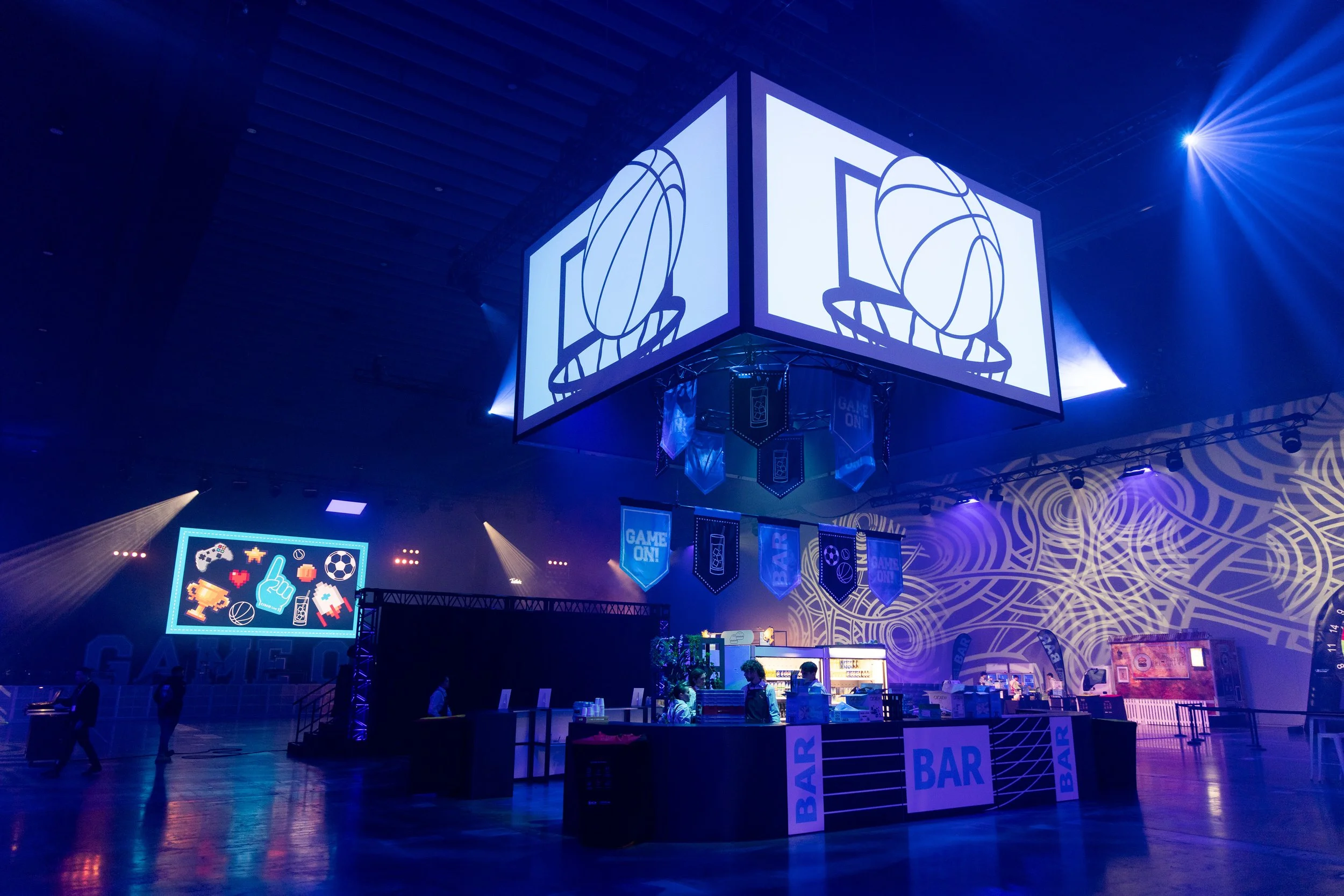 The Cisco Live! Celebration in Melbourne was a high-energy evening event combining live music, interactive zones, and immersive experiences. The theme, ‘GAME ON!’, blended sporting and gaming elements, inspiring the visual identity I designed and rolled out across signage, digital screens, environmental graphics, and printed collateral. The food stations were crafted to add playful, fun moments that brought the theme to life.